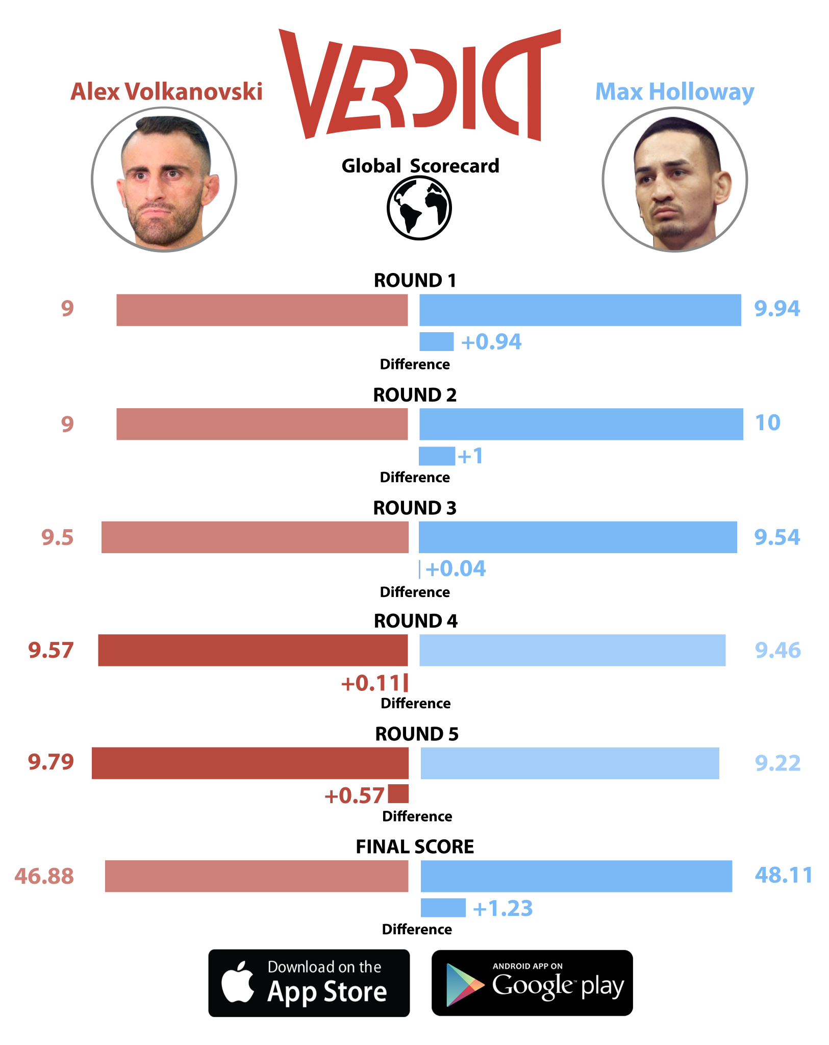 Verdict On Twitter Max Holloway Defeated Alex Volkanovski As Per The Global Scorecard Data Ufc251